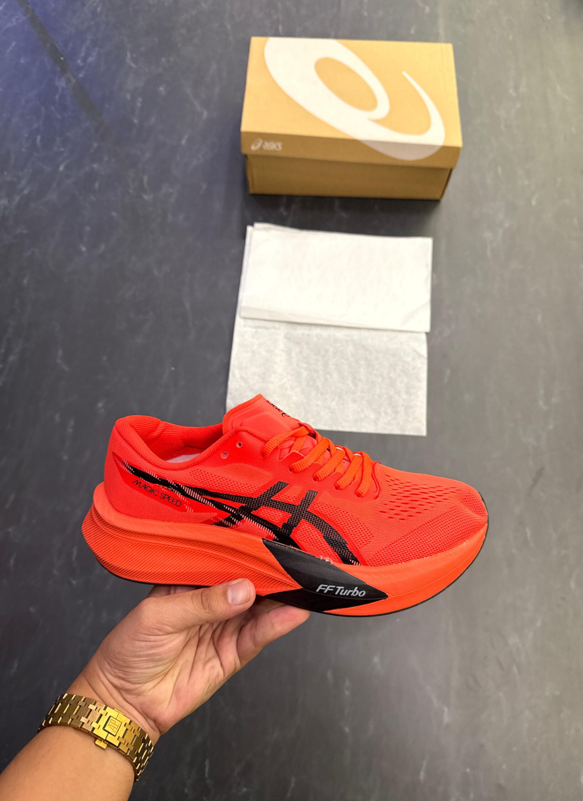 Experience speed, comfort, and performance with First Copy ASICS FF Turbo Magic Speed Shoes for Men, designed for runners and fitness enthusiasts who want premium style at an affordable price. Inspired by the original ASICS Magic Speed series, these shoes feature a sleek aerodynamic design and responsive cushioning that supports high-speed movement.