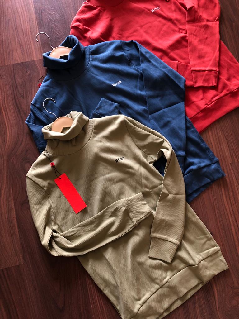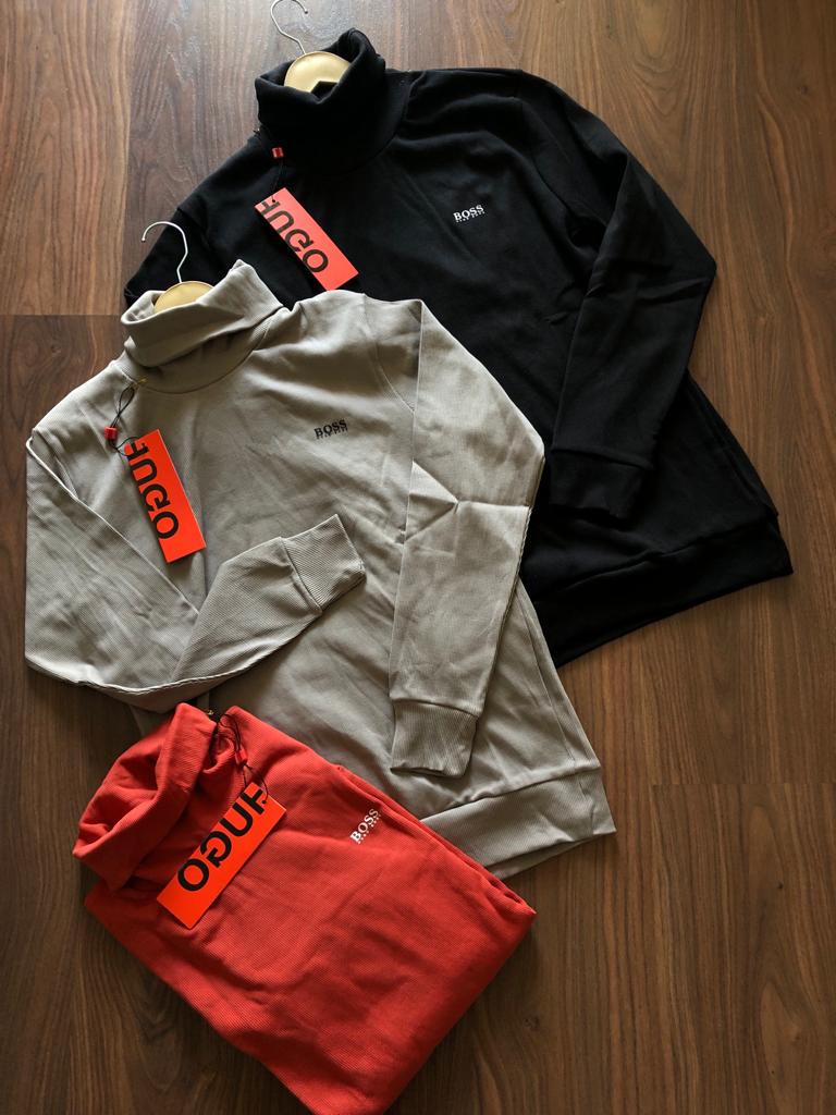 The First Copy Hugo Boss Roll Neck Sweater delivers a sleek and premium look inspired by classic Hugo Boss style. Crafted with soft, high-quality fabric and a comfortable roll-neck design, this sweater is perfect for casual outings, office wear, and stylish winter layering.